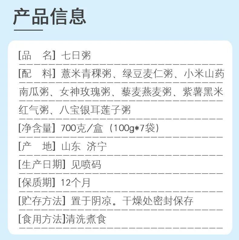 七日粥700g/盒(100g*7袋)*4盒/七日粥700g/盒(100g*7袋)*6盒